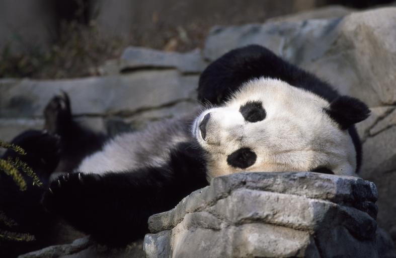 Keywords: panda bear zoo cute wildlife china asia chinese fur mammal black white reclining laying icon nature