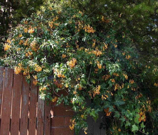 Keywords: Pandorea golden showers 2.jpg en Yellow-flowered cultivar of Pandorea pandorana cult Sydney Own Casliber 2008-09-20 Pandorea pandorana