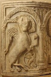 | Keywords: Panel ambo Louvre RF3016.jpg century Winged bull of Saint Luke with halo bearing a book with the inscription Secundum Lucam panel of the parapet surrounding an ambo Taureau ailé symbole de saint Luc coiffé de l'auréole et portant un livre avec l'inscription « Secundum Lucam » Panneau du parapet d'un ambon century 12 marble cm 112 Institution Louvre Department of Sculptures Denon lower ground floor room 1 Secundum Lucam la 2237 object history Provenance Abbazia di Pomposa Codigoro district of Ferrara probably <br /> Mattei Bologna Arthur Sambon credit line ProvenanceEvent gift Société des Amis du Louvre 1958 accession number Louvre number 3016 own Marie-Lan Nguyen photo date 2006 other versions Medieval sculptures Mattei Collection Bull of Saint Luke Paris Abbazia di Pomposa 12th-century reliefs France Romanesque reliefs in France Gift of the Société des Amis du Louvre Italian sculptures in the Louvre - Room 1 Ambos |