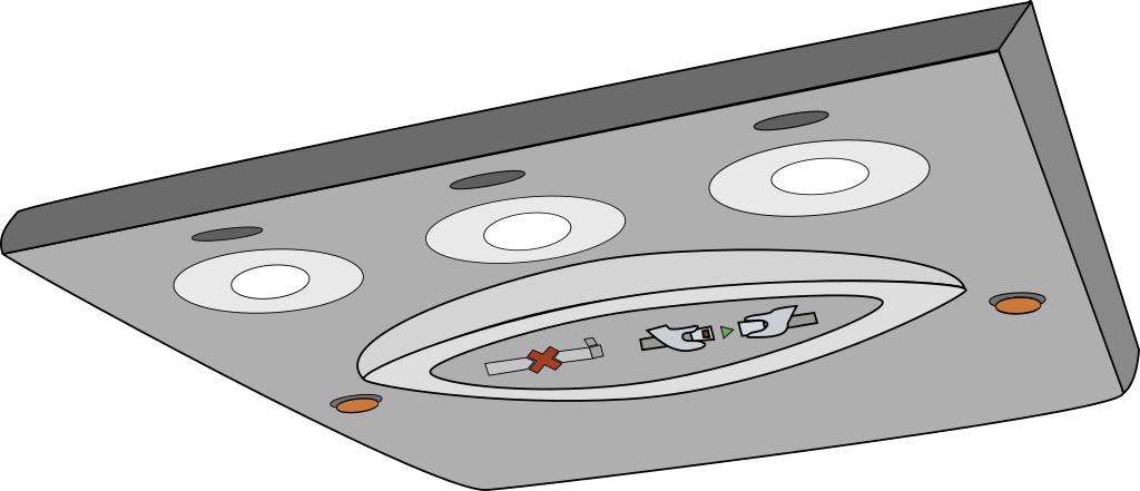 Keywords: panel controls airplane ceiling seat belt sign smoking overhead lights safety unit