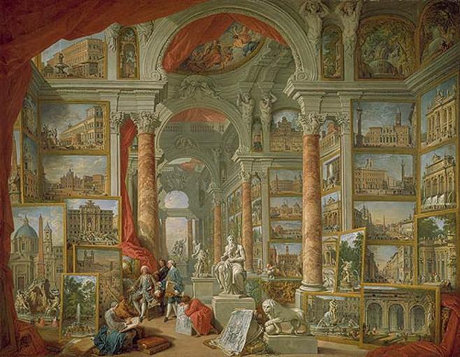 | Keywords: Panini, Modern 2 Rome.jpg Modern Rome by Giovanni Paolo Panini 34215 1757 Creator Giovanni Paolo Panini oil canvas cm 172 1 229 9 institution Museum of Fine Arts Boston object history exhibition history credit line this is the pendant of Ancient Rome http //www metmuseum org/collections/search-the-collections/110001692 img 0 Metropolitan Museum of Art accession number 1975 805 <gallery> File Pannini Giovanni Paolo - Gallery of Views of Modern Rome - 1759 JPG </gallery> PD-old-100-1923 original upload log page en wikipedia Panini 2C_Ancient_Rome jpg 2010-03-27 20 08 NuclearWarfare 500×389× 59082 bytes <nowiki></nowiki> 2005-05-04 19 44 Gdr 500×379× 40621 bytes <nowiki>Ancient Rome by Giovanni Paolo Panini painted 1757 Oil on canvas; 172 1 x 229 9 cm PD-old-100-1923 From http //www metmuseum org/Works_Of_Art/images/ep/images/ep52 63 1 L jpg</nowiki> Modern Rome Giovanni Paolo Pannini |