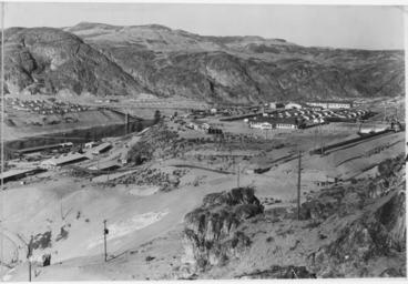 | Keywords: Panorama of general works area taken from top of forebay slope on the east side - NARA - 294097.jpg Scope and content Photograph from Volume Two of a series of photo albums documenting the construction of the Grand Coulee Dam and related work on the Columbia Basin Project Full caption for this photographs reads Panorama of general works area taken from top of forebay slope on the east side From left to right at top of picture can be seen the silos in the cement storage and blending plant; the 60-inch main line conveyor running to the spoil pile in Rattlesnake Canyon; the 3 000 ft steel cellular west side cofferdam behind which is the exposed bedrock; concreting plant; bents for the high and the low concrete placing trestles; the sand and gravel conveyor suspension bridge; Coulee Dam the Government townsite; the highway bridge and farther down the river the combination highway and railroad bridge built by the contractor In the near foreground is the general east side excavation area with conveyors running to the cross-river conveyor connecting with the main line on the west side; the east cofferdam; the machine shop area of the contractor; the sand and gravel unloading arrangement and Mason City the contractor's camp General notes This image is part of a panoramic view which includes items 807 808 and 809 The original image measures approximately 28 inches in width 294097 Local identifier Department of the Interior Bureau of Reclamation Engineering and Research Center 05/18/1981 - 03/04/1988 NARA's Rocky Mountain Region Denver NRGA Building 48 Denver Federal Center West 6th Avenue and Kipling Street Denver CO 80225-0307 1935-11-05 Record group Record Group 115 Records of the Bureau of Reclamation 1889 - 2008 Record group ARC 444 Photograph albums compiled 1903 - 1972 Series ARC 293611 File unit File unit ARC Variant control numbers NAIL Control Number NRG-115-CONSTPHO85006-COLBASIN2808 Other versions <gallery> File Panorama_of_general_works_area_taken_from_top_of_forebay_slope_on_the_east_side_-_NARA_-_294097 tif tif File Panorama_of_general_works_area_taken_from_top_of_forebay_slope_on_the_east_side_-_NARA_-_294097 jpg jpg </gallery> NARA-cooperation PD-USGov Construction of the Grand Coulee Dam |