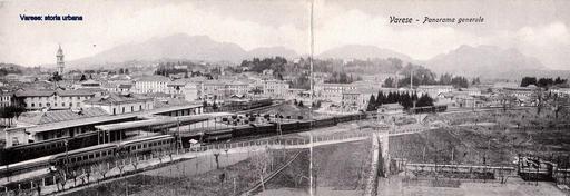 | Keywords: varese outdoor Immagine presa da Giubiano: panorama di Varese e di Biumo Inferiore. In basso a sinistra la stazione delle Ferrovie dello Stato (1865), alle sue spalle la cupola del Politeama. Più a destra l'imbocco di via Morosini con l'albergo Magenta, al centro l'edificio del Calzaturificio di Varese e si intravede nascosta dagli alberi e da una villetta, la stazione delle Ferrovie Nord Milano (1885). Nella seconda cartolina i Molini Marzoli Massari sovrastati da alte ciminiere fumanti, più a destra spicca isolato il campanile della chiesa di San Pietro e Paolo. Immagine presa da Giubiano: panorama di Varese e di Biumo Inferiore. In basso a sinistra la stazione delle Ferrovie dello Stato (1865), alle sue spalle la cupola del Politeama. Più a destra l'imbocco di via Morosini con l'albergo Magenta, al centro l'edificio del Calzaturificio di Varese e si intravede nascosta dagli alberi e da una villetta, la stazione delle Ferrovie Nord Milano (1885). Nella seconda cartolina i Molini Marzoli Massari sovrastati da alte ciminiere fumanti, più a destra spicca isolato il campanile della chiesa di San Pietro e Paolo. |