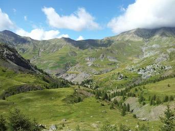 Keywords: panorama mountain trail alps hiking mountain path summer horizon