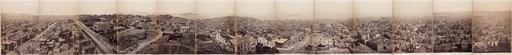 | Keywords: Panorama of San Francisco by Eadweard Muybridge, 1878.jpg Artwork Creator Eadweard Muybridge On 11 July 1877 Eadweard Muybridge 1830-1904 announced in the San Francisco Bulletin the publication of a Panorama of San Francisco from California Street Hill The photographs were taken from the tower of the Mark Hopkins mansion then the highest point in San Francisco 116 metres 381 feet above the harbour which commanded an uninterrupted sweeping view of the entire city its harbour and San Francisco Bay One year later Muybridge re-photographed the view as seen here Taken in April 1878 Muybridge worked with a mammoth camera using 18 x 22 inch plates Muybridge started at about 11am and probably with the help of an assistant made each section within a matter of 15 minutes The seventh panel from the left was taken last; it is a second shot of a section that was not successful on the first try He used a 40 inch near telephoto lens which determined the number of 20 inch wide glass negatives needed to make the complete circle He had chosen the day for the execution of the panorama carefully; the shadows are sharp and the atmosphere clear Published as an album and comprising thirteen mounted albumen prints the resulting panorama exceeded seventeen feet in length when fully extended He printed nine copies but never advertised them 1878 04 13 albumen prints produced from the original 18 x 22 inch mammoth plate negatives Collection of the Society of California Pioneers place of discovery object history exhibition history credit line conservation treatment by Gawain Weaver accession number place of creation The tower of the Mark Hopkins Hotel Mark Hopkins mansion Nob Hill San Francisco http //gawainweaver com/news/News-1878-Muybridge-San-Francisco-Panorama-Conserved/ Gawain Weaver PD-old-auto 1904 http //cprr org/Museum/Archive/san_francisco_1of5 html Panorama http //ronhenggeler com/History/Muybridge/muybridge_index html Eadweard Muybridge 1878 photographs 1878 in San Francisco History of San Francisco Panoramics of San Francisco Mark Hopkins mansion Panorama of San Francisco by Eadweard Muybridge 1878 18 30 5 September 2015 UTC Panorama of San Francisco by Eadweard Muybridge 1878 jpg |