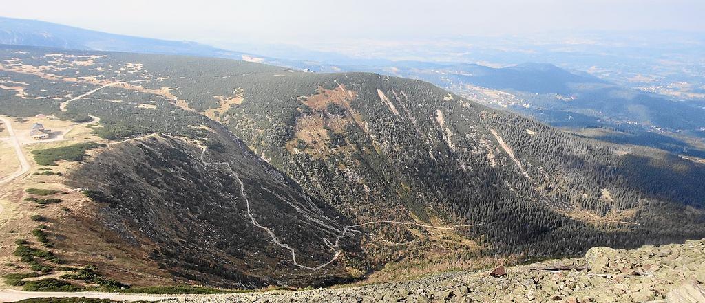 | Keywords: Panorama śnieżka 25.09.2006.jpg pl Widok panoramiczny z Śnieżki w stronę Małej Kopy Kocioł Łomniczki - największy kocioł polodowcowy w Karkonoszach Łomniczka spada tu licznymi kaskadami tworząc przepiękny jar W kotle w 1985 roku utworzono symboliczny cmentarz ludzi gór - na jednej z tablic widnieje napis martwym ku pamięci żywym ku przestrodze U wylotu kotła znajduje się schronisko Nad Łomniczką own FxJ 25 09 2006 creation ; 26 06 2008 first publication Pictures by FxJ Sněžka Krkonoše | ||||