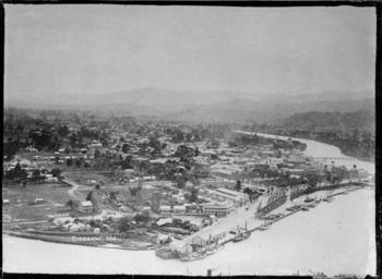 | Keywords: blackandwhite monochrome photo border outdoor black and white View looking north-west over Gisborne from Kaiti Hill Lookout. The Gladstone Road bridge which crosses the Turanganui River is just visible on the far right. The wharves and buildings along Reads Quay (including a hotel) are in the immediate foreground. The commercial area is centre right. Photograph taken by William Archer Price, circa 1910 Inscriptions: Inscribed - Photographer's title on negative -bottom left: Gisborne. 220.. Quantity: 1 b&w original negative(s). Physical Description: Dry plate glass negative 4.75 x 6.5 inches Panoramic view of Gisborne taken from Kaiti Hill. Price, William Archer, 1866-1948 :Collection of post card negatives. Ref: 1/2-001110-G. Alexander Turnbull Library, Wellington, New Zealand. natlib.govt.nz/records/23103201 View looking north-west over Gisborne from Kaiti Hill Lookout. The Gladstone Road bridge which crosses the Turanganui River is just visible on the far right. The wharves and buildings along Reads Quay (including a hotel) are in the immediate foreground. The commercial area is centre right. Photograph taken by William Archer Price, circa 1910 Inscriptions: Inscribed - Photographer's title on negative -bottom left: Gisborne. 220.. Quantity: 1 b&w original negative(s). Physical Description: Dry plate glass negative 4.75 x 6.5 inches Panoramic view of Gisborne taken from Kaiti Hill. Price, William Archer, 1866-1948 :Collection of post card negatives. Ref: 1/2-001110-G. Alexander Turnbull Library, Wellington, New Zealand. natlib.govt.nz/records/23103201 |