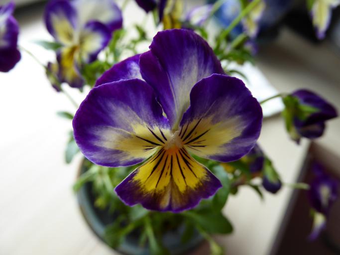 Keywords: pansy 400–500 vase blue yellow transparent ornament flower blossom bloom