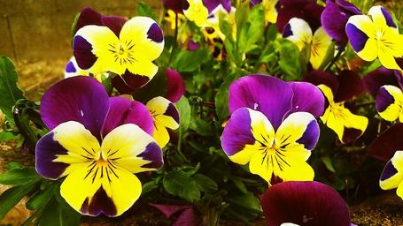 Keywords: pansy flower spring flower garden purple and yellow pansy flora