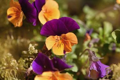 Keywords: pansy orange purple flower blossom bloom spring flower garden spring close