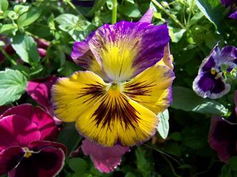 Keywords: pansy purple and yellow flowers garden