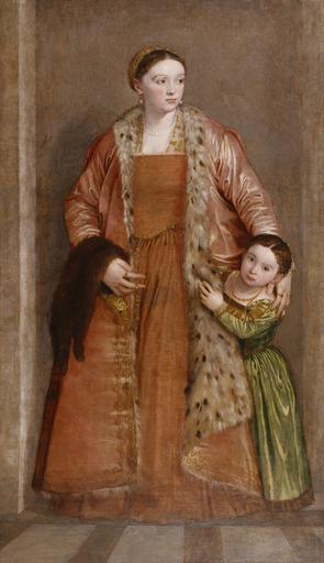 | Keywords: Paolo Veronese - Portrait of Countess Livia da Porto Thiene and her Daughter Deidamia - Walters 37541.jpg Veronese's majestic full-length portrait of the countess and her eldest daughter Deidamia born in 1545 was originally accompanied by one of her husband Count Issepo Giuseppe da Porto and their son Leonida now in the Palazzo Pitti Florence These paintings were most likely installed in their palace in Vicenza which had recently been built by Andrea Palladio 1508-1580 The portraits would have been placed so that it would appear as if the family were standing in niches inside the palace; however the floor strip below is a later addition Veronese was famous for his use of color and mastered the rendering of luxurious textures and fabrics including the marten's fur The head of gold and enamel is nearly identical to one in the Walters' collection 57 1982 Marten fur was thought to protect women in childbirth and in 1552 the countess was pregnant with her daughter Emilia 1552 Renaissance Oil on canvas Painted surface H including addition across bottom 82 1/16 x W 47 5/8 in 208 4 x 121 cm accession number 37 541 23952 Private collection Vicenza date and mode of acquisition unknown Paolo Paolini Rome date and mode of acquisition unknown Henry Walters Baltimore 1921 mode of acquisition unknown Walters Art Museum Henry Walters Acquired by Henry Walters 1921 An Exhibition of the Treasures of The Walters Art Gallery The Walters Art Museum Baltimore; Pace Wildenstein Gallery New York; Smith College Museum of Art Northampton 1967 Undercover Stories in Art The Walters Art Gallery Baltimore 1980 The Art of Paolo Veronese 1528-1588 National Gallery of Art Washington 1988-1989 Highlights from the Collection The Walters Art Gallery Baltimore 1998-2001 At Home in Renaissance Italy Victoria and Albert Museum London 2006-2007 Titian Tintoretto Veronese Rivals in Renaissance Venice Museum of Fine Arts Boston Boston; Musée du Louvre Paris 2009-2010 place of origin Venice Italy Walters Art Museum license 2D Livia da Porto Thiene and her Daughter Deidamia Veronese |