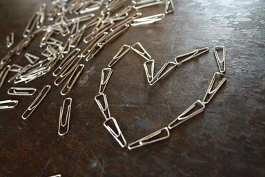 Keywords: paper-clips heart shape paper clips office stationery metal fastener metallic bunch many steel