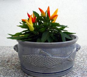 Keywords: paprika chili pepperoni pepper pods fiery chili peppers sharpness vitamins cook frisch vegetables healthy yellow orange pot earthenware