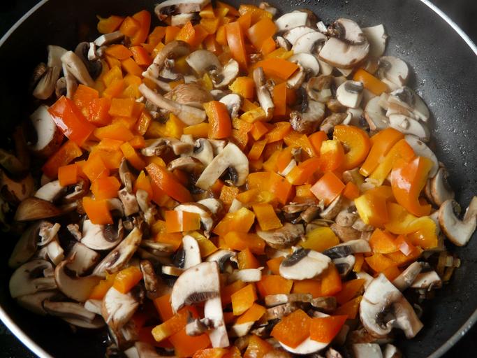 Keywords: paprika mushrooms pan stew vegetables sear food cook