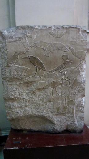 | Keywords: Papyrus thicket relief.JPG en Relief from the pyramid temple of Userkaf now in the Egyptian Museum of Antiquities in Cairo The scene includes a butterfly and a variety of birds a hovering pied kingfisher a green kingfisher facing a grey heron a hoopoe facing a purple water-hen a sacred ibis ¦ and in the lowest part the head of a bittern The Egyptian Museum in Cairo by Abeer el-Shahawy 2005 The relief would have been part of a hunting scene symbolizing the king's role as the establisher of order The life in the papyrus thicket may also allude to the role of the sun god Ra in creating life on earth Fifth Dynasty 25th century BC 2015-12-31 02 58 26 own A Parrot other versions 30 02 51 3 N 31 14 1 2 E CC-0 Userkaf Uploaded with UploadWizard |