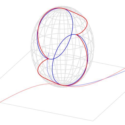 | Keywords: Parabola in projective space.svg en y x<sup>2</sup> y x<sup>3</sup> projected on RP<sup>2</sup> mapped onto a sphere Own RupertMillard 2009-09-14 Intended to replace en File Parabola_in_projective_space png which is in a raster format Made in gnuplot The code <pre> /usr/bin/gnuplot -persist set parametric set urange -0 9999 0 9999 set vrange -1 1 set isosamples 25 25 set xrange -2 2 set yrange -2 2 set zrange -1 1 set style line 1 lt rgb dddddd lw 1 set style line 2 lt rgb 9999ff lw 1 set style line 3 lt rgb 0000ff lw 1 set style line 4 lt rgb ff9999 lw 1 set style line 5 lt rgb ff0000 lw 1 set border 15 ls 1 unset key set noxtics set noytics set noztics set view 55 25 set terminal svg For scaling -1 1 to - ˆž ˆž scale x x/ 1-x 1+x splot cos u pi cos v pi sin u pi cos v pi sin v pi ls 1 \ u 2 u 2 2 -1 ls 2 \ scale u /sqrt scale u 2+scale u 4+1 scale u 2/sqrt scale u 2+scale u 4+1 -1/sqrt scale u 2+scale u 4+1 ls 3 \ -scale u /sqrt scale u 2+scale u 4+1 -scale u 2/sqrt scale u 2+scale u 4+1 1/sqrt scale u 2+scale u 4+1 ls 3 \ u 2 u 2 3 -1 ls 4 \ scale u /sqrt scale u 2+scale u 6+1 scale u 3/sqrt scale u 2+scale u 6+1 -1/sqrt scale u 2+scale u 6+1 ls 5 \ -scale u /sqrt scale u 2+scale u 6+1 -scale u 3/sqrt scale u 2+scale u 6+1 1/sqrt scale u 2+scale u 6+1 ls 5</pre> Then the svg was cropped by changing the output to contain this line <pre><svg width 600 height 600 viewBox 145 130 310 280 </pre> Algebraic geometry Images with Gnuplot source code |