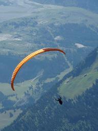 Keywords: parachute green mountain nature landscape summer alps france sport trees flight descent