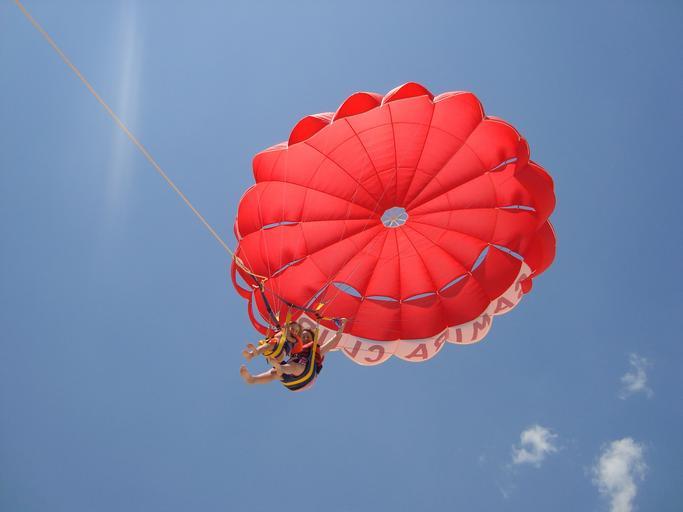 Keywords: parachute kids fun cloud sky happy child outdoors air freedom skydive travel joy super wind brave