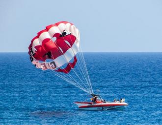 Keywords: parachute paragliding red balloon sky sport activity vacation recreation summer leisure action