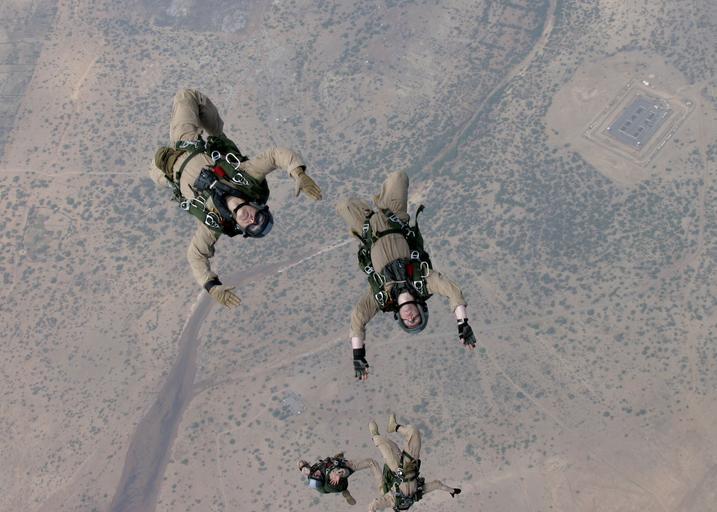 Keywords: parachute skydiving parachuting jumping training military skydivers plane parachutists danger