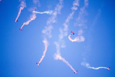 Keywords: parachuting parachute skydiving air show paratrooper sky diving extreme sport jump parachutist skydiver formation