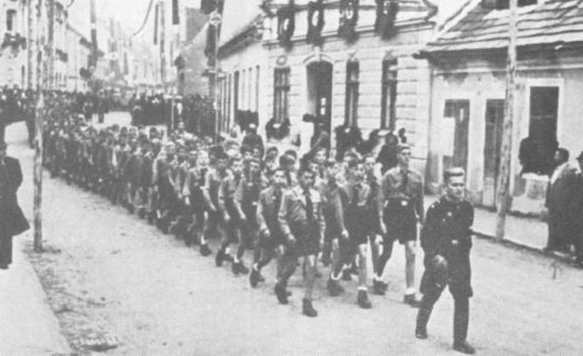 | Keywords: Parada Hitlerjugenda v Brežicah.jpg sl Parada Hitlerjugenda v Brežicah 1941 1945 http //www znaci net/00003/518 pdf author Custom license marker 2014 04 26 PD-Serbia Uploaded with UploadWizard Slovenia in World War II Historical images of Brežice Hitlerjugend Parades in Slovenia |