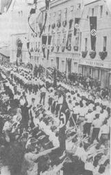 | Keywords: Parada Kočevskih Nemcev ob Hitlerjevem rojstnem dnevu v Kočevju.jpg sl Parada Kočevskih Nemcev ob Hitlerjevem rojstnem dnevu v Kočevju 1941-04-20 Nacistična raznarodovalna politika v Sloveniji v letih 1941 - 1945 Maribor 1968 author other versions Custom license marker 2014 11 09 PD-Slovenia Uploaded with UploadWizard Slovenia in World War II 1941 in Slovenia Parades in Slovenia Gottscheer Historical black and white photographs of Kočevje | ||||