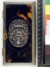 | Keywords: Paradiessgartlein, voller Christlichen Tugenden. - Upper cover (c48a5).jpg Style Centrepiece Mottoes Religious miscellaneous; Caption Upper cover; Colour Brown; Edge Unspecified exhibition history Decorative Technique Unspecified; Cover Material Tortoise shell Tortoiseshell binding silver border engraved silver centrepieces with mother of pearl tortoiseshell and silver clasps hinges on the lower cover Centrepiece engraved with the letters; STHE DAS IST GOTTESLAM object history Text 1722; Ulm; Unspecified object type Cc-zero place of creation Binding Germany place of discovery Unspecified British Library image http //www bl uk/catalogues/bookbindings/LargeImage aspx RecordId 020-000008536 ImageId ImageId 43873 Copyright BL Paradiessgartlein voller Christlichen Tugenden Uploaded with GWToolset Paradiessgartlein voller Christlichen Tugenden - Upper cover c48a5 http //www webarchive org uk/bldatasets/bindings/9164_4 jpg Bookbinding 18th-century bookbinding British Library Bookbindings |