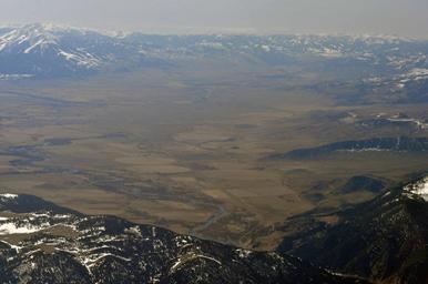 Keywords: ParadiseValleySouthernEnd2010.jpg en Paradise Valley Montana from 15 000 feet over Livingston Montana looking south own Mike Cline 2010-03-27 Mountains of Montana Paradise Valley Montana