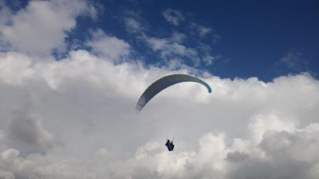 Keywords: paragliding clouds beach adrenaline flying outdoor high fun joy