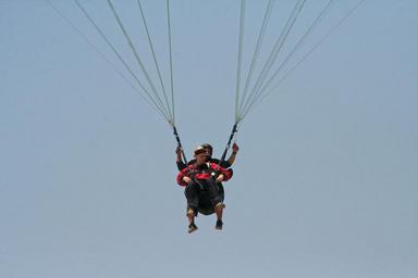 Keywords: paragliding parachute sky air paraglider freedom adventure extreme sport activity girl female woman man male harness extreme sports people leisure outdoors blue