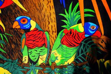 Keywords: parakeets birds towel bath towel colorful color bench towel terry terry cloth fabric parrots aras lori parakeet