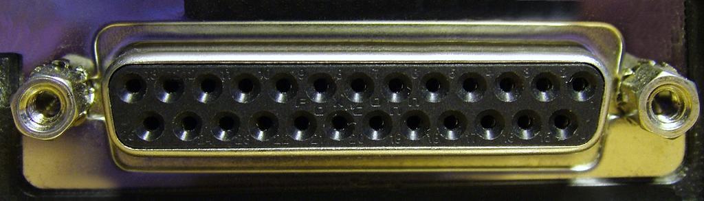 Keywords: Paralel port.jpg 25pinový konektor samice na straně PC Own 2007-05-15 ladarozan Parallel port DB-25 connector