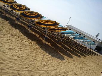 Keywords: parasols beach tilted rotated askew optical deception illusion