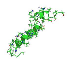 | Keywords: Parathormon 1BWX.png en 3d structure of parathyroid hormone PTH fragment 1-39 from PDB 1BWX Ref U C Marx et al 2000 Solution structures of human parathyroid hormone fragments hPTH 1-34 and hPTH 1-39 and bovine parathyroid hormone fragment bPTH 1-37 Biochem Biophys Res Commun 267 213-220 PMID 10623601 DOI 10 1006/bbrc 1999 1958 adapted from http //www pdb org/pdb/files/1bwx pdb gz using PyMOL own work 2008-09-02 http //www ebi ac uk/thornton-srv/databases/cgi-bin/pdbsum/GetPage pl pdbcode 1bwx Peptide hormones |