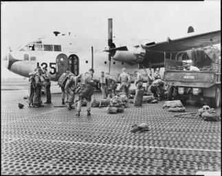 | Keywords: Paratroopers of the 187th Regimental Combat Team put on parachutes and "Mae West" life preservers before boarding a... - NARA - 542289.tif Scope and content Paratroopers of the 187th Regimental Combat Team put on parachutes and Mae West life preservers before boarding a 483rd Troop Carrier Wing U S Air Force C-119 Flying Boxcar en route to Korea from southern Japan Combat Cargo Commandos and C-119s airlifted the 187th RCT personnel and weapons vehicles and supplies in a continuous operation lasting two nights and a day which involved 300 round-trip flights across the Japan Sea The big transport planes landed or took off every two minutes in combat Cargo's eigth airlift of the 187th since the Korean war began General notes 542289 Local identifier 342-AF-88059AC Department of Defense Department of the Air Force 09/26/1947 - Still Picture Records Section Special Media Archives Services Division NWCS-S National Archives at College Park 8601 Adelphi Road College Park MD 20740-6001 ca date 1953 07 02 Record group Record Group 342 Records of U S Air Force Commands Activities and Organizations 1900 - 2003 Record group ARC 654 Black and White Photographs of U S Air Force and Predecessors' Activities Facilities and Personnel Domestic and Foreign compiled 1930 - 1975 documenting the period 1863 - 1975 Series ARC 542185 File unit File unit ARC Variant control numbers Agency-Assigned Identifier NASM 4A 37948<br /> NAIL Control Number NWDNS-342-AF-88059AC yes Other versions NARA-cooperation PD-USGov C-119s in the Korean War United States Army in the Korean War Parachuting in the United States Army 187th Infantry Regiment United States |