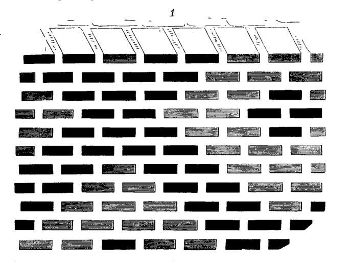 | Keywords: Parement.brique.chateau.Palisse.Moulins.png Nous trouvons encore dans le Bourbonnais au château de la Palisse à Moulins même des constructions élevées en brique et mortier qui datent du XV<sup>e</sup> siècle et dont les parements présentent par l'alternance de briques rouges et noires des dessins variés tels que losanges zigzags chevrons etc Viollet-le-Duc Brick walls in France | ||||