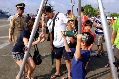 View Original:Parent Photographing Child Play Model Bomb Hanged on Triangle Stand in Zuoying Naval Base 20151024.jpg (4896x3264)