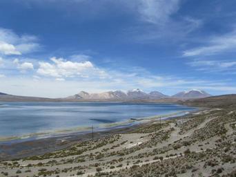 Keywords: parincota chile lake clouds sky kahl blue nature wide