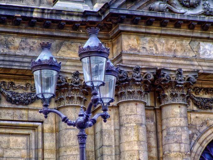 Keywords: paris france city cities urban architecture architectural details lamppost light facade building outside hdr