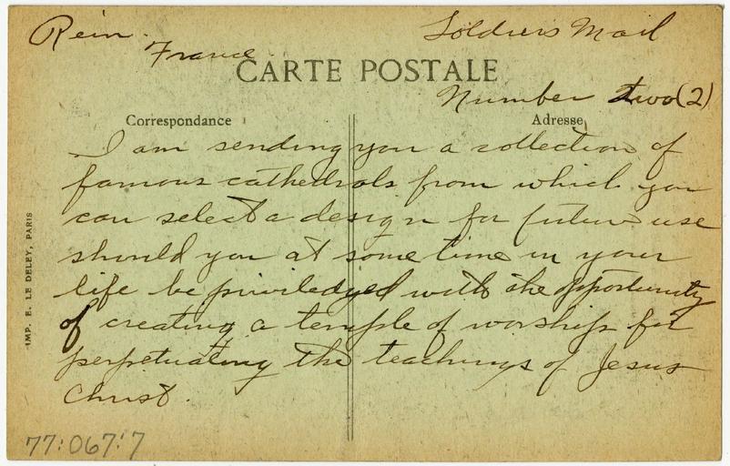 | Keywords: george_eastman_house georgeeastmanhouse armistice day armisticeday soldiers mail soldiersmail post card postcard carte postal cartepostal imp. e le deley paris impeledeleyparis soldiers mail rein soldiersmailrein france message in english messageinenglish color:rgb_avg=bfb885 color:rgbavg=bfb885 text document writing Accession Number: 1977:0067:0007v Maker: Unidentified Photographer Title: PARIS - La Basilique du Sacr?oeur de Montmartre et la Savoyarde Date: ca. 1916 Medium: collotype print Dimensions: Overall: 13.8 x 8.8 cm George Eastman House Collection General – information about the George Eastman House Photography Collection is available at www.eastmanhouse.org/inc/collections/photography.php. For information on obtaining reproductions go to: www.eastmanhouse.org/flickr/index.php?pid=1977:0144:0050MP. Accession Number: 1977:0067:0007v Maker: Unidentified Photographer Title: PARIS - La Basilique du Sacr?oeur de Montmartre et la Savoyarde Date: ca. 1916 Medium: collotype print Dimensions: Overall: 13.8 x 8.8 cm George Eastman House Collection General – information about the George Eastman House Photography Collection is available at www.eastmanhouse.org/inc/collections/photography.php. For information on obtaining reproductions go to: www.eastmanhouse.org/flickr/index.php?pid=1977:0144:0050MP. |