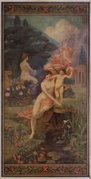 | Keywords: Paris, mairie du 10e arrdt, salle des fêtes, Julien Thibaudeau, Le Toucher (1907) 01.jpg Artwork Creator Julien Thibaudeau peinture murale de la salle des fêtes de la mairie du 10<sup>e</sup> arrondissement de Paris 1907 mural Institution Town hall of Paris Xe arrondissement LangSwitch reception hall salle des fêtes place of discovery object history exhibition history credit line accession number place of creation own work Coyau Q25541602 PD-Art PD-old-auto 1943 Files by User Coyau Taken with Canon EOS 600D Taken with Canon EF 28mm F1 8 Reception hall of Town hall of Paris 10e arrondissement Murals in Paris Julien Thibaudeau 1907 paintings in France |