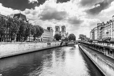 Keywords: paris notre dame black and white cathedral france french architecture europe landmark famous tourism water seine