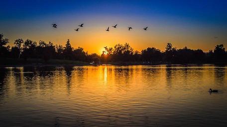 Keywords: park day ducks lake sun trees water sunset long balboa valley san fernando