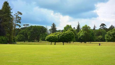 Keywords: park parklandschaft english garden green area meadow trees sky cyclists rain clouds weather light ireland county kerry killarney national park