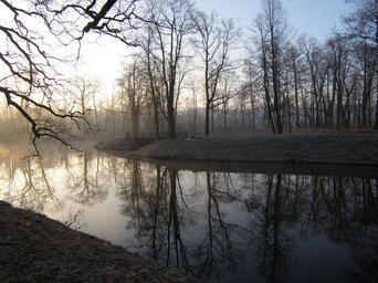 Keywords: park pond spring morning fog water reflection natural environment tranquil