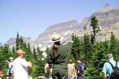 | Keywords: park rangers parkrangers glacier national park glaciernationalpark montana nps national park service nationalparkservice interpreters interpretation public speaking publicspeaking education guided hikes guidedhikes ranger talks rangertalks outdoor landscape mountainside Park Ranger giving a Ranger Talk at Logan Pass. Photo: David Restivo, NPS Park Ranger giving a Ranger Talk at Logan Pass. Photo: David Restivo, NPS | ||||