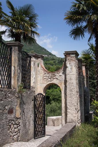 Keywords: park trees palm trees waterfall garden generously romantic arch goal archway bricked wall grid wrought iron away limit demarcation input output