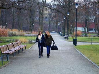 Keywords: park walk happy girls walking fall autumn outdoors female person people fresh air smile smiling young woman lifestyle carefree life lithuanian vilnius
